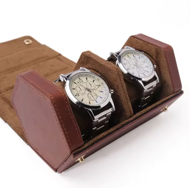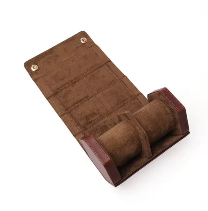 Personalized Hexagon Leather Watch Boxes Genuine Leather Watch Roll Box Two Watches