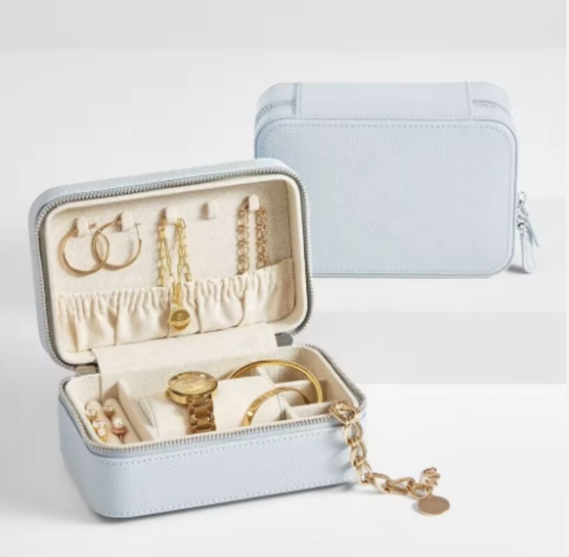 Portable Zipper Jewel Case Necklace Ring Jewellery Storage Premium Velvet Handmade Custom Watch Jewelry Box