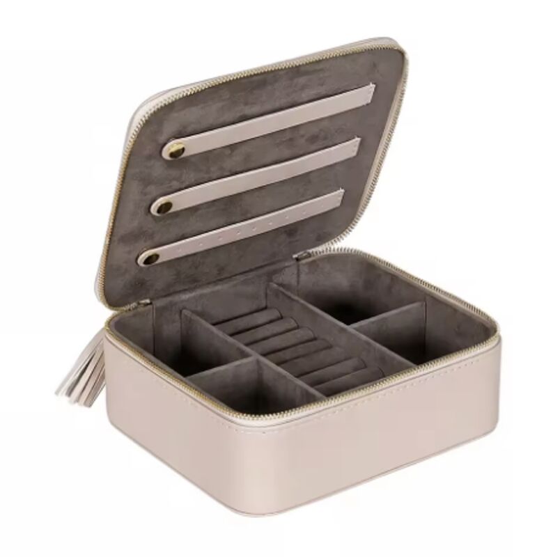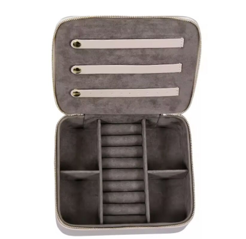 Luxury Ladies Leather Jewellery Box With Velvet Lining Zipper Travel Jewelry Case OEM 4