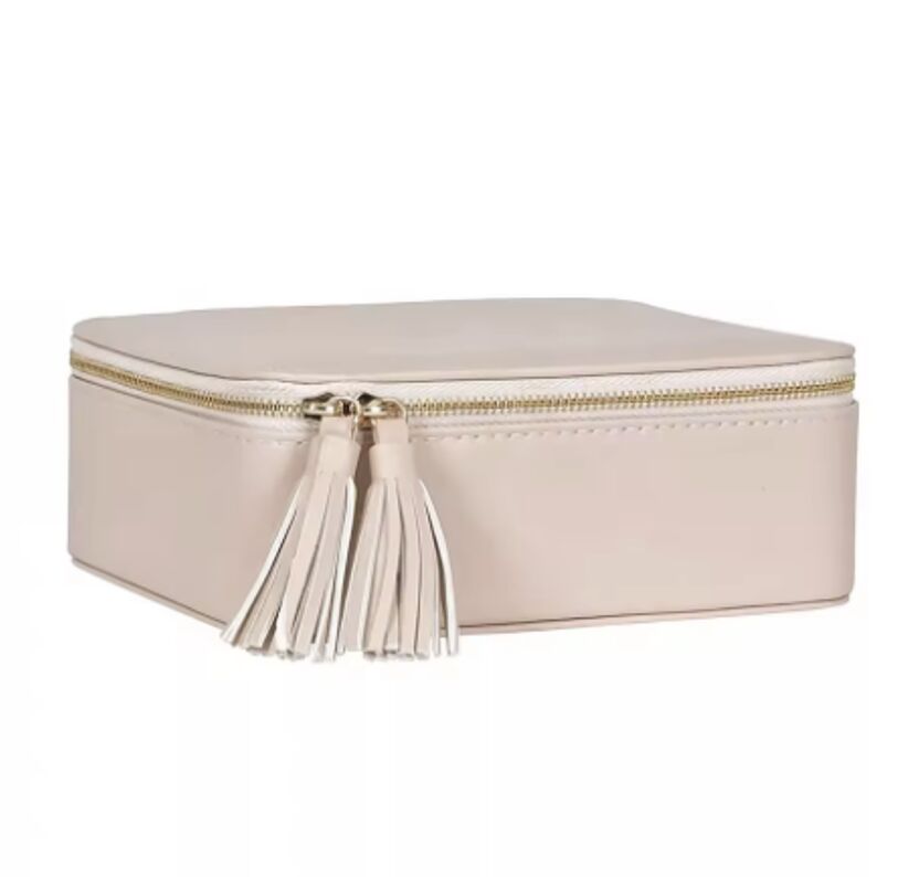 Luxury Ladies Leather Jewellery Box With Velvet Lining Zipper Travel Jewelry Case OEM