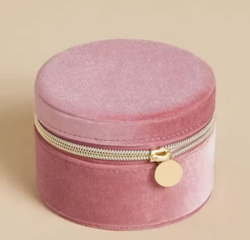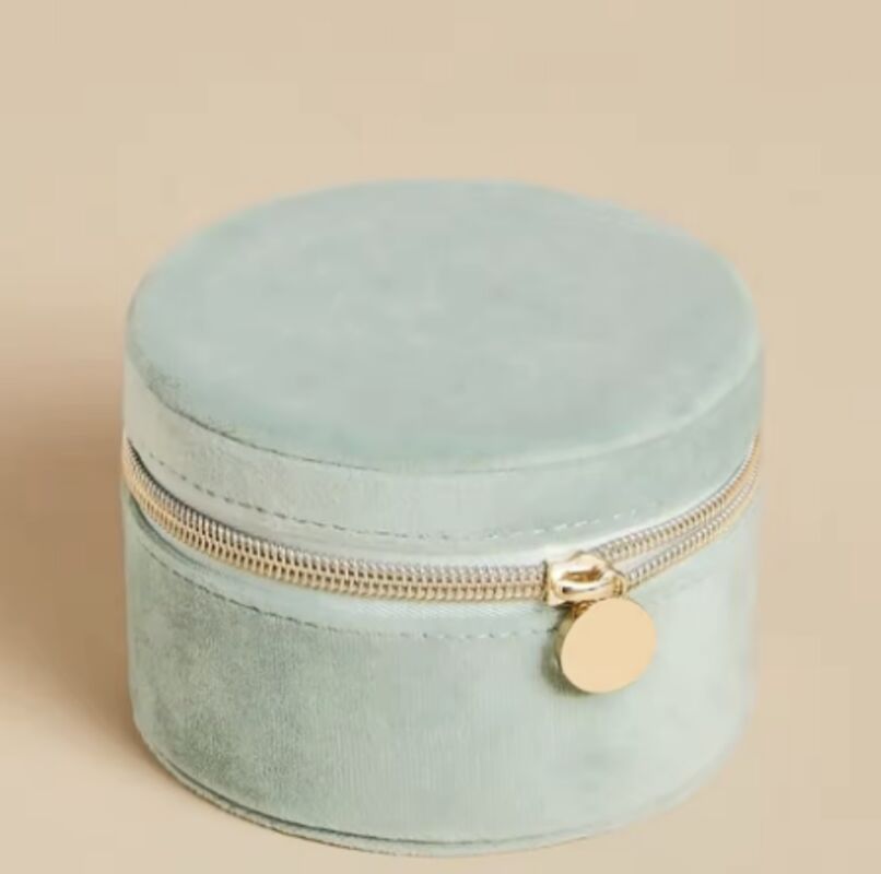 Custom Jewellery Box Organizer Storage Zipper Closure Round Soft Velvet Jewelry Travel Case with Drawstring Pouch