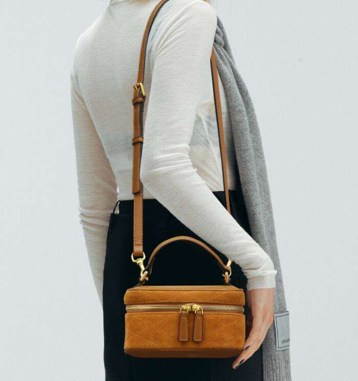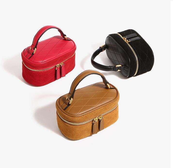 Perfect gift luxury genuine leather handle ladies makeup bag tech accessories daily cosmetic bag for travel
