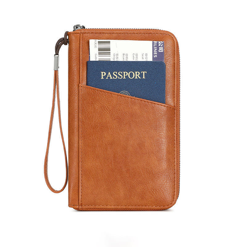 Slim Vegan Leather Passport Cover Multifunctional Ticket Organizer With Wrist Strap