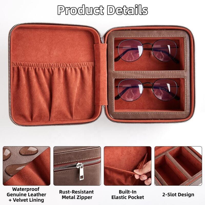 Personalized Logo Zippered Leather Eyeglass Holder Daily Use Reusable Waterproof 5